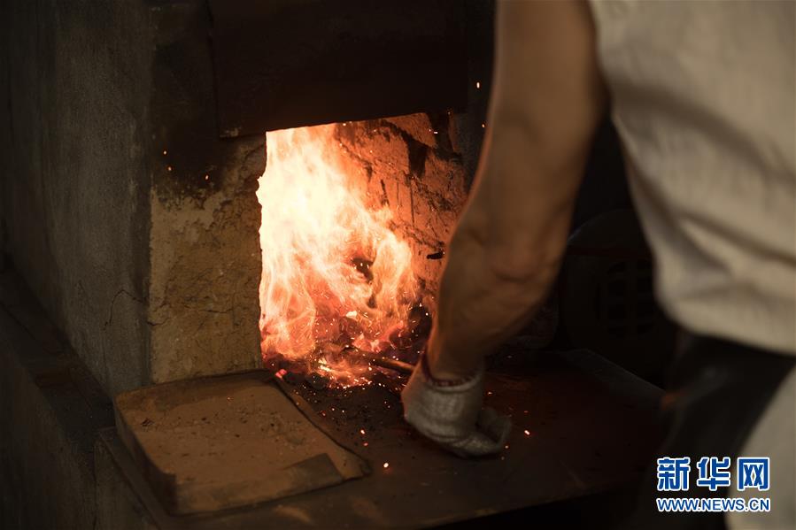 5月21日,郑国荣在“古越剑铺”炼制坯料。 新华社记者 翁忻旸 摄