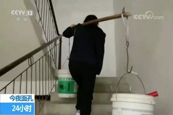 杜秀兰隔一两天就要到旁边邻居家,打上几桶泉水,给孩子们做饭。两桶水重达几十斤,全部压在杜秀兰的瘦弱的身板上,遇到梯坎时她要放慢脚步,反复试探。以前,杜秀兰打水的地方还要远得多。为了挑水,她没少摔跤。