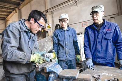 在沈阳市沈北新区燕京啤酒有限公司的工匠技能培养与创新工作室内,几位技术能手正在研讨怎样对生产部件进行改进,这样的研讨几乎每天都在进行。