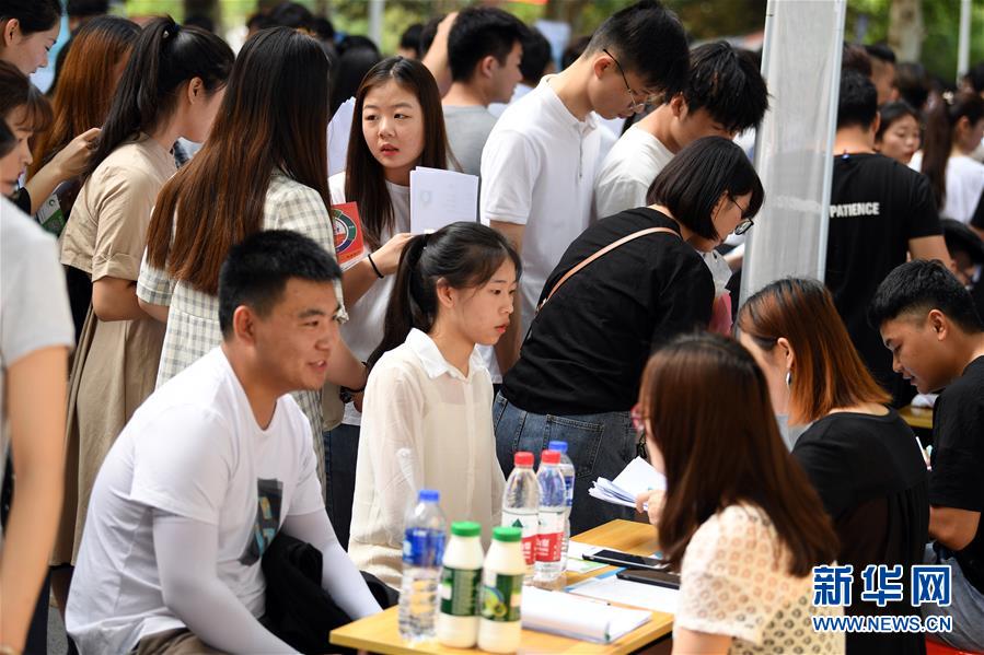 6月12日,毕业生在安徽省亳州职业技术学院举行的“校园双选会”上求职应聘。新华社发(张延林 摄)