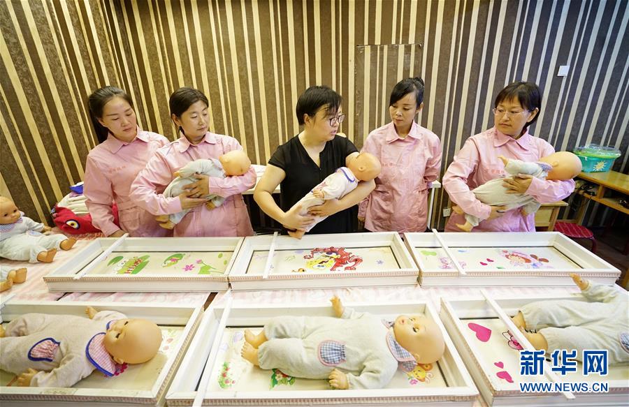 7月23日,河北省滦州市滦河街道一所家政培训机构的老师(中)给学员们讲授婴儿护理技能。 近年来,河北省滦州市滦河街道办事处依托辖区内的家政培训机构和培训基地,免费为有就业需求的妇女开展育婴、护理、烹饪等家政服务“订单式”技能培训,促进妇女就业。 新华社记者 牟宇 摄