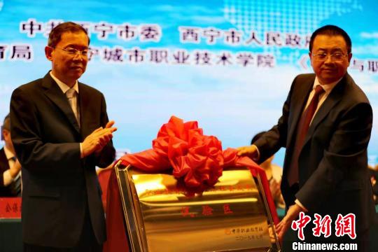 图为西宁市被授予“中华职业教育社职业教育促进经济社会发展试验区”。 张超 摄