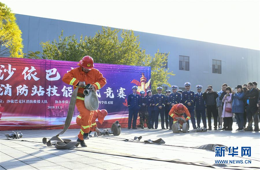 11月1日,在“消防宣传月”启动仪式上,消防人员在进行消防技能比武。
