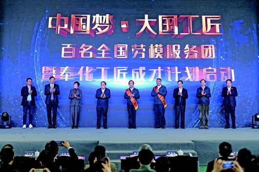 12月10日,,“中国梦·大国工匠”百名全国劳模服务团暨奉化工匠成才计划启动仪式在浙江省宁波市奉化区工贸旅游学校举行。