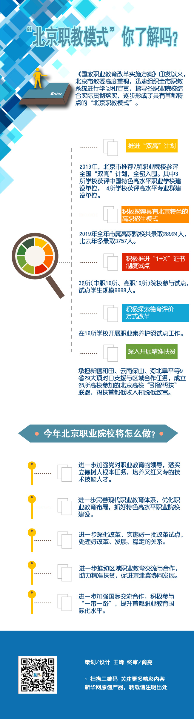 《国家职业教育改革实施方案》印发以来,北京市教委高度重视,迅速组织全市职教系统进行学习和宣贯,指导各职业院校结合实际贯彻落实,逐步形成了具有首都特点的“北京职教模式”。