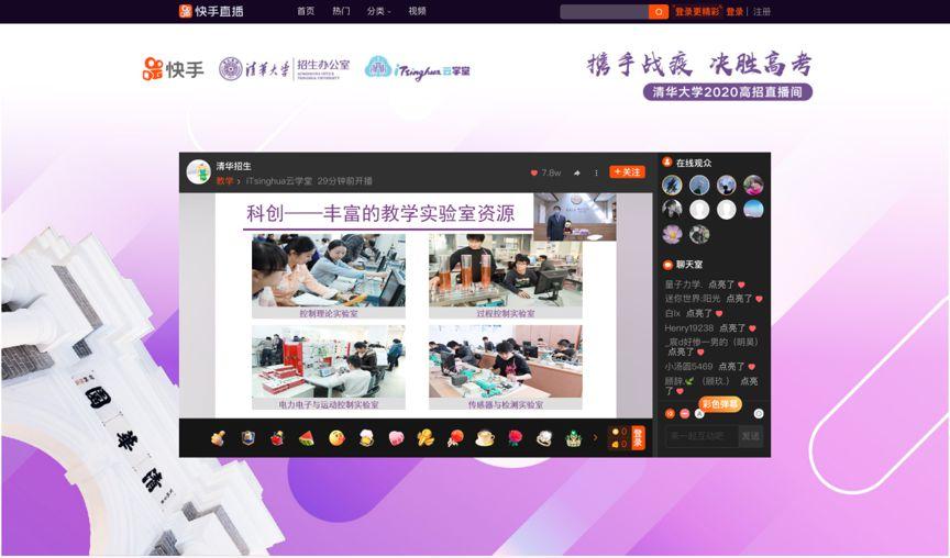 为了帮助全国的高三学子更好地备战高考,明确专业选择,志愿填报心里有底,也让中学生及所有心系清华的人感受到清华的魅力。3月1日,清华大学招生办公室联合快手推出iTsinghua云学堂,暨清华大学2020高招直播系列活动。通过专业认知讲座、高招政策宣讲、备考经验分享、拔尖创新人才贯通培养试点等四大板块,向社会开放清华大学的优质教育资源,推动基础教育与高等教育的衔接贯通。