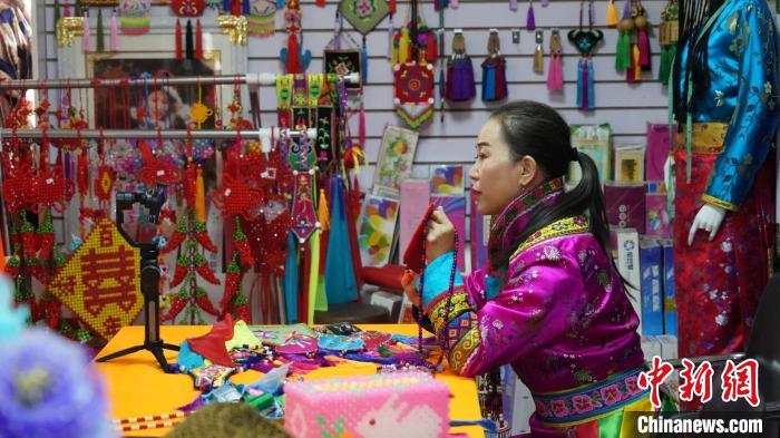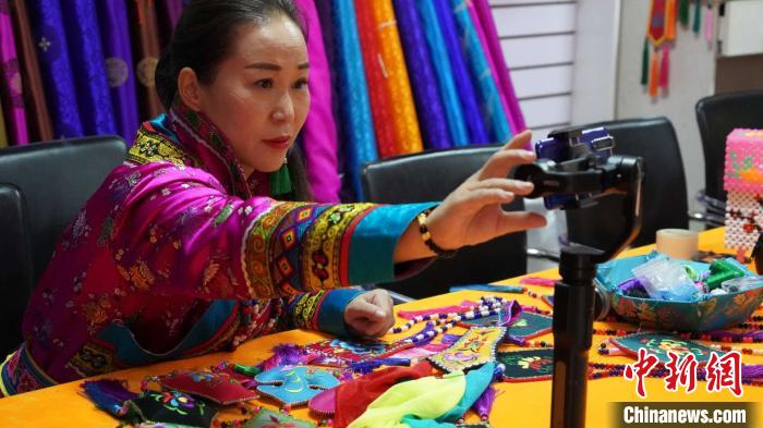 甘肃裕固族绣娘直播授课 助残疾人居家就业
