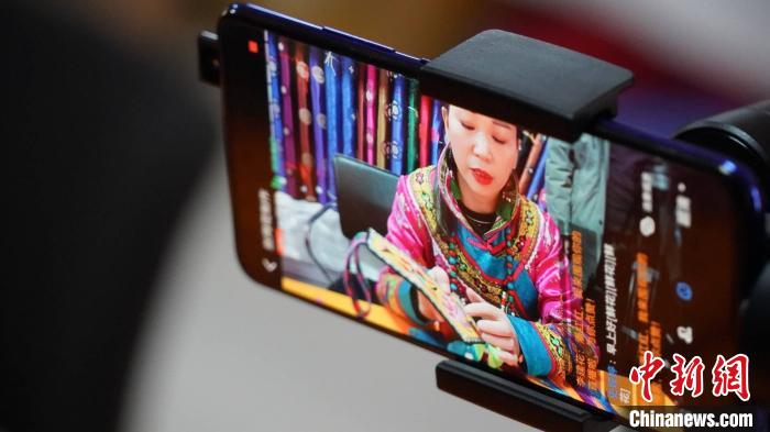 连日来,在甘肃省张掖市肃南裕固族自治县,43岁的裕固族绣娘潘小红每天按时直播做培训。 宋坤 摄
