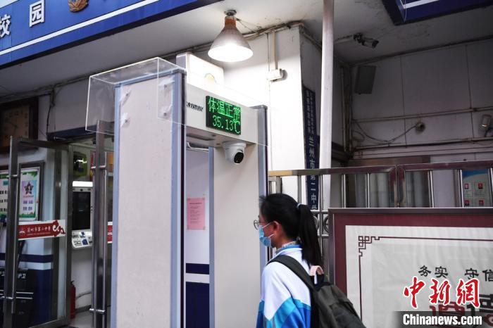 走进兰州市第二中学校门,大门口安装了两个电子测温门,方便学生进入时快速测量体温。