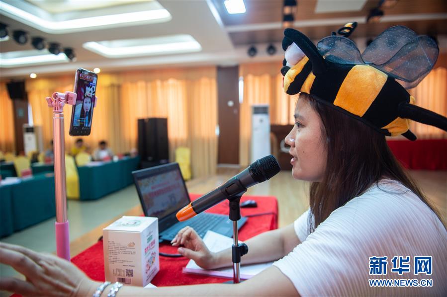 5月14日,培训班的学员在讲台上进行模拟直播卖货。 近日,海南省农民科技教育培训中心请来专业团队,为来自全省的100名农民及农业销售相关人员开办为期十天的电商直播培训班。培训班结束后,海南省农民科技教育培训中心还将策划直播带货系列活动,开拓销售渠道助农增收。 新华社记者 张丽芸 摄