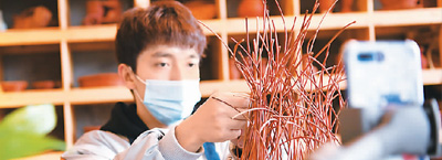 贵州瑜懿科技有限公司正开展网上蕨编、藤编知识培训,传技能、解难题,提升员工技艺。王炳真摄(人民图片)