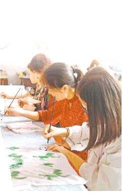 莒县工友创业园内,村民接受服装手绘艺术培训。(吴宝书 栗晟皓 报道)