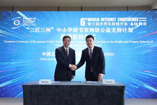 在线教育企业VIPKID作为行业代表,受邀参会分享了互联网教育公益的创新实践,并签约“三区三州”中小学图书室网络公益支持计划。