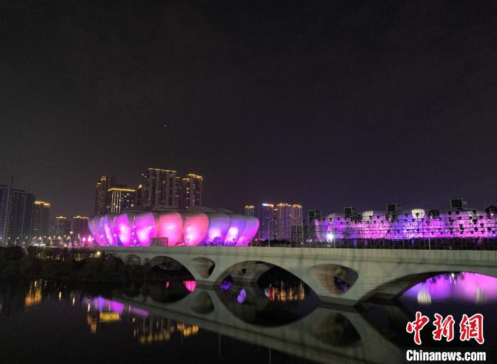夜幕中的杭州亚运会场馆。 张斌 摄