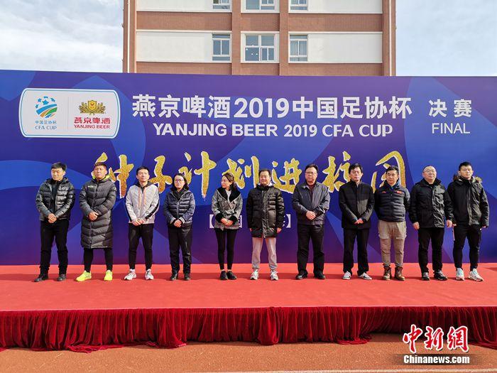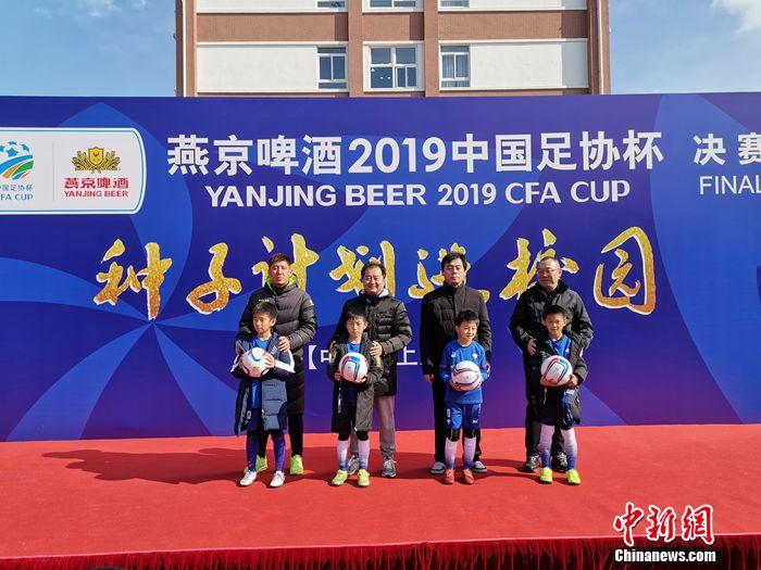 中新网12月6日电 6日上午,燕京啤酒2019中国足协杯“种子计划”校园公益活动在上海举行。中国足球协会中国足球协会副秘书长兼市场开发部部长刘洁、北京燕京啤酒股份有限公司董事长、总经理赵晓东;北京燕京啤酒股份有限公司副董事长、常务副总经理谢广军;足协名宿嘉定城发徐斌,泰州远大姜宁,上海申鑫徐骏敏;上海闵行区实验小学校长何学锋等嘉宾共同出席了本次活动,并向同学们捐赠了足球、服装等礼品。