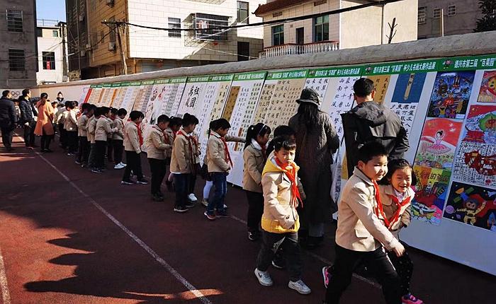中新网12月18日电 近日,江西省德兴市第三届“百果园”杯少儿书画获奖作品巡展进校园活动在德兴市第五小学举办,300多名师生参加活动。本次少儿书画大赛由百果园赞助支持,德兴市文化馆、铜都墨韵轩文化艺术培训有限公司承办。