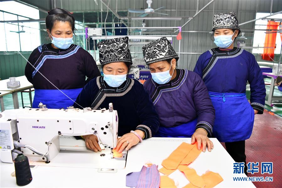 4月2日,在贵州省榕江县平江镇滚仲村扶贫车间,几名妇女在学习缝纫技艺。 连日来,贵州省黔东南苗族侗族自治州榕江县的扶贫车间在做好疫情防控的前提下,陆续复工复产。为提高产品质量,达到订单生产标准,当地妇联、就业等部门有针对性地对到扶贫车间务工的妇女进行手工刺绣、缝纫等技能培训,提升就业技能。 新华社记者 杨文斌 摄