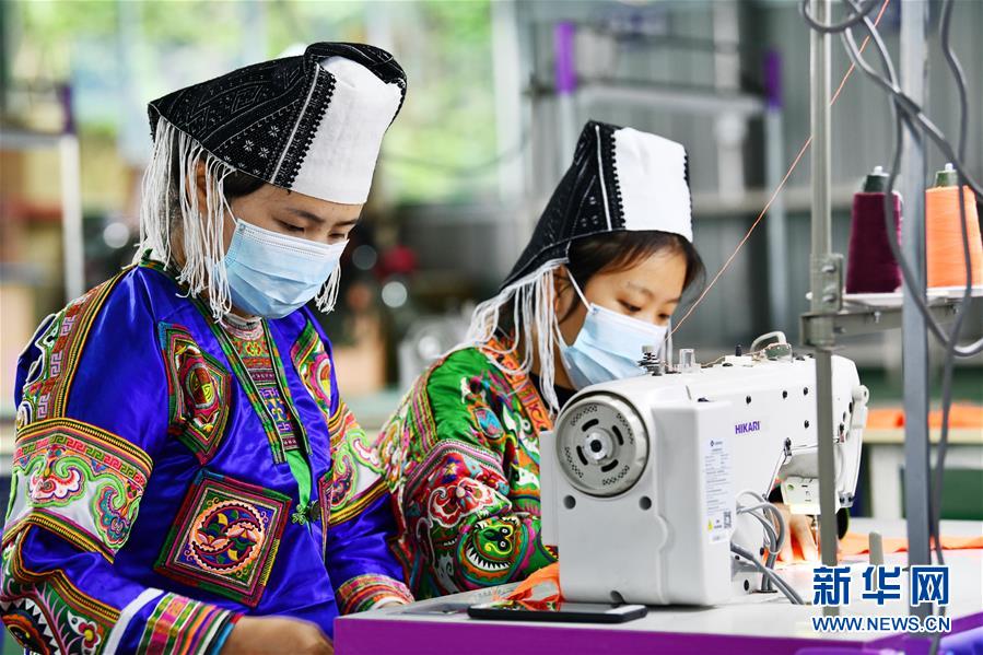 4月2日,在贵州省榕江县平江镇滚仲村扶贫车间,两名女孩在学习缝纫技艺。 连日来,贵州省黔东南苗族侗族自治州榕江县的扶贫车间在做好疫情防控的前提下,陆续复工复产。为提高产品质量,达到订单生产标准,当地妇联、就业等部门有针对性地对到扶贫车间务工的妇女进行手工刺绣、缝纫等技能培训,提升就业技能。 新华社记者 杨文斌 摄
