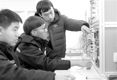 图为教师指导学生做PLC实训。通讯员 杨树凤 记者 张学军 摄影报道