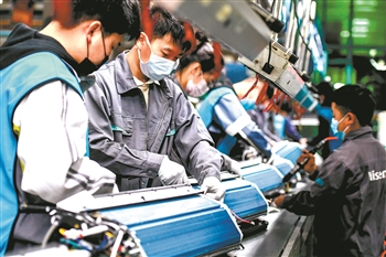 3月26日,位于浙江省湖州市长兴经济技术开发区的海信(浙江)空调公司的总装车间内,长兴职教中心的学生正在装配室内机电控盒。