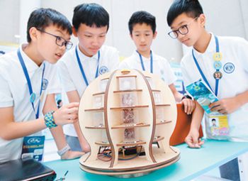 5月23日,在中国人民革命军事博物馆举行的2018年全国科技活动周暨北京科技周活动主场,第十三届全国青少年未来工程师博览与竞赛——爱创造智能作品项目总决赛同时进行,来自全国100多所中小学校的300多名学生参赛。