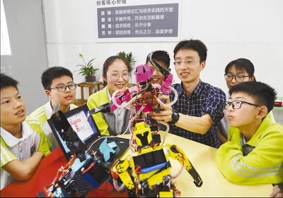 5月24日,在山东烟台王懿荣纪念馆,菲律宾华裔青少年学习制作甲骨文“福”字。当日,2018年海外华裔青少年“中国寻根之旅”春令营烟台营的90余名菲律宾华裔青少年走进王懿荣纪念馆,探索汉字的起源与演变,体验中华文化的博大精深。孙文潭/摄(新华社发)