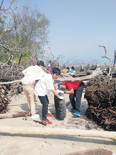 参加2018亚洲学生环境论坛的9国学生在凯利岛海滩清洁垃圾