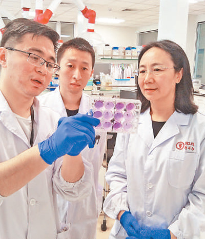 陈化兰(右一)正在与学生一起查看实验结果。这位女院士就是陈化兰。现任中国农业科学院哈尔滨兽医研究所国家禽流感参考实验室主任的她,20多年来不忘初心、孜孜以求“我渴望把我所学的知识和本领奉献给禽流感防控”