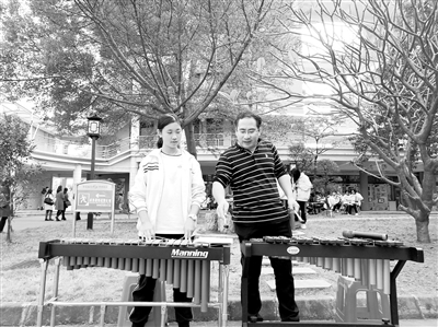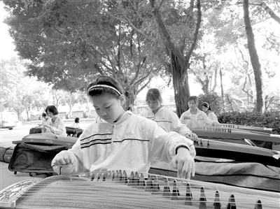 广东省佛山市南海区南海实验中学自2010年起实施“人人都会一门器乐”工程,利用每周四下午的两节课开展器乐训练。该校初一初二1800多名学生根据兴趣爱好选择一种乐器,在本校音乐教师和外聘专业师资共同指导下,用十余种乐器奏响青春之歌。本报记者 王友文 刘盾 摄