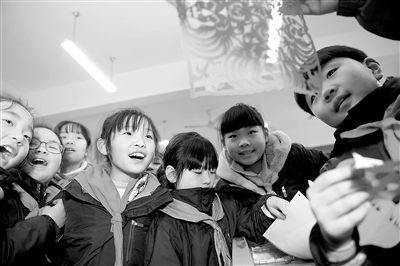 1月7日,安徽省合肥市朝霞小学学生在上“课后三点半”剪纸特色课。为解决孩子放学早、部分家长无暇接孩子等问题,从2018年起,合肥市在部分学校试点推出“课后三点半公益项目”,引入校外培训机构为学生提供课后公益服务。根据自愿报名选择,学生在每天下午三点半后可以免费参加剪纸、绘画、乐器、书法、魔方等特色课堂。