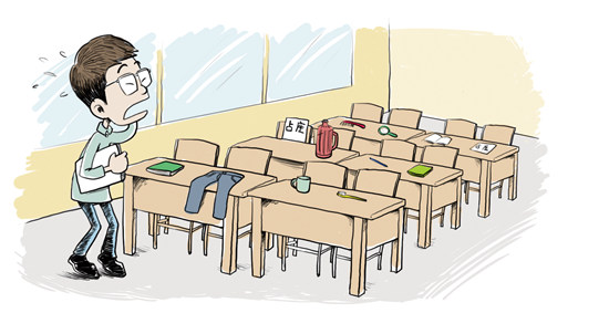 河北经贸大学商务英语专业的赵楠(化名)说,学校教室有的温度比较低,有的则比较高,温度适宜的屋子比较有限,座位也不太够,所以学生就会占座。赵楠觉得占座的行为不合理,“好多座位占着不用,浪费公共资源”。