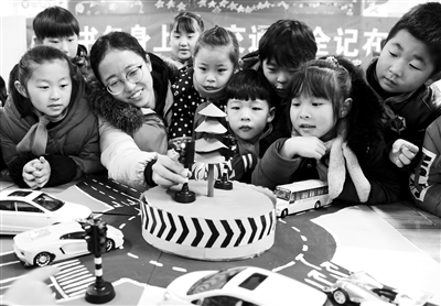 近日,江苏大学志愿者在江苏省镇江市李家大山小学通过“模拟路况”为小学生演示讲解交通安全知识。寒假临近,江苏大学志愿者来到镇江市李家大山小学,开展“安全记在心 快乐度寒假”活动,通过模拟路况场景演示、交通安全儿歌、交通标识等,指导小学生学习交通安全知识,引导他们安全文明度寒假。