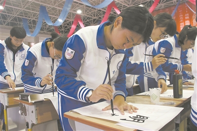近日,山东省威海市第四中学举行千人同书经典语句主题书法临摹活动,1000余名师生在浓郁墨香中共享传统文化艺术带来的熏陶与润泽。多年来,威海四中始终坚持“做有生命温度的教育,为孩子的幸福人生奠基”办学理念,以文化人、以美育人,深入实施书法、经典诵读等优秀传统文化教育,在学生心中深植传统文化之根、铸牢中华之魂。