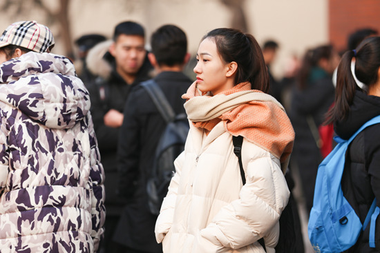 2019年2月19日早上,在山东艺术学院内,几十位参加艺考的考试正在排队等候进入考场。 供图:视觉中国