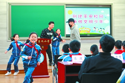 今天上午,东城区和平里第九小学进行了主题为“创建平安校园 争做文明少年”的新学期开学典礼。刘毅摄