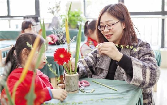 如此生动的插花课堂,在文思小学师生、家长中受到好评。有家长说,花艺课培养了孩子发现美、追寻美、创造美的能力。