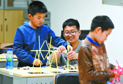 中国科技馆在清明假期开设创意吸管、机器人体验课,让孩子们用参观、学习、体验的方式度过一个有意义的假期。 本报记者 和冠欣摄