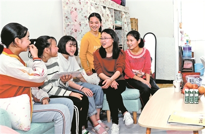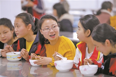 坐在学生中间,石赢就像一位可亲的大姐姐。她说,在学校食堂与住校学生同桌用餐、边吃边聊,有利于师生之间加强沟通、增进感情,感受学校大家庭的温暖。