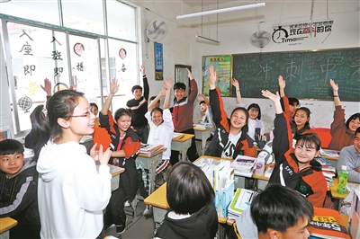 作为一名青年教师,石赢上起课来生动有趣、气氛活跃,深受学生喜爱。这是课堂上学生踊跃举手发言,争抢她特意准备的答题“红包”。