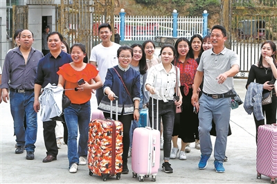 3月21日,刚刚结束外出学习的一批青年教师返回学校,林运军(右二)与部分教师前去迎接,青年教师们兴奋地讲述着这次学习的收获和体会。