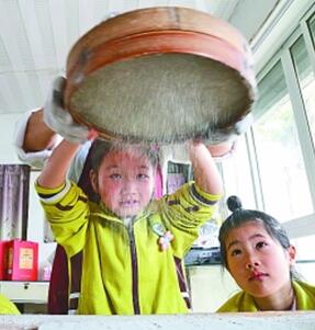 日前,浙江省湖州市长兴县泗安镇中心幼儿园的孩子们在非遗传承人池长泉的指导下体验手工制作酥糖,孩子们通过现场体验手工制作酥糖,近距离感受市级非物质文化遗产的魅力。图为孩子们在非遗传承人池长泉的指导下往做好的酥糖上撒芝麻粉。许斌华摄/光明图片