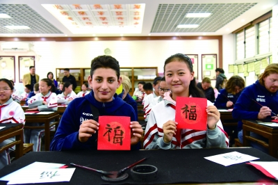 在冰雪特色校园访问活动中,来自国外球队的孩子们和北京同龄人一起分享打冰球的感受,一起做泥塑、比赛跑、打乒乓、画团扇、写汉字。中外青少年开展文化交流,增进相互了解,让国外青少年亲身感受中国青少年的校园生活,更感受了“双奥”城市北京的诚挚热情。