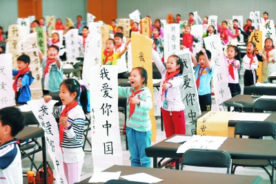 “和校园”第五届北京中小学生书法节决赛日前举行,经过三个月的征稿,从毛笔、硬笔和篆刻三大类20234件作品中选出来的634件,进入到了现场书写环节。本报记者 方非摄