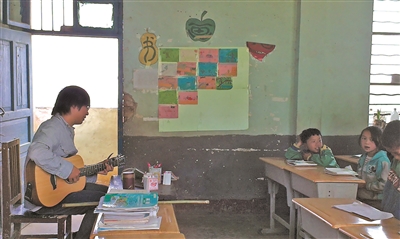 都说知识改变命运,但是在具体的教育场景当中,梁俊慢慢发现知识不一定能影响人心,“比如在家访时有的孩子成绩很好,可是却突然和邻村的孩子私奔去打工了。”他开始对教育有更深的思考,不断想摸清楚教育的方向和理念。他拿出背来的吉他,找不到合适的古诗音乐,就开始尝试自己谱曲。