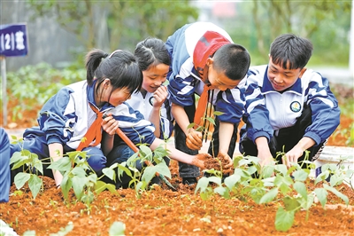 “小心一点儿,别弄断它的根。”六年级学生在给太空架豆进行移栽。室内手工制作、室外种植体验,学校的科学课多了份“乡土”的味道。太空种子种植不仅能引导学生学习太空科学知识,还能让学生亲身体验种植和丰收的喜悦。