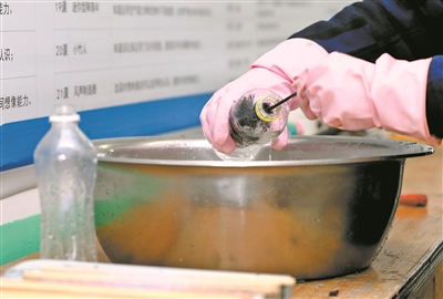 废旧材料多,卫生处理工作也不能少。科学课上常用的制作材料有40余种,李学战收集来的材料都会进行分门别类的清洗与消毒,确保学生玩得开心、用得安全。