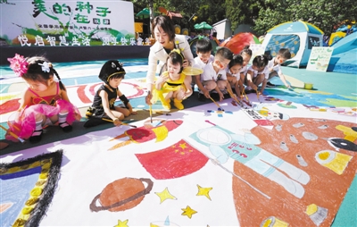 六一国际儿童节即将到来,5月29日,北京明天幼稚集团第五幼儿园万泉河园举行了主题为“迎新中国七十华诞 绘心中美好祝福”的庆祝活动。孩子们在老师的带领下画出对国家的美好祝福, 通过绘画,引导孩子爱国家、学科学,从小培养爱国情怀。