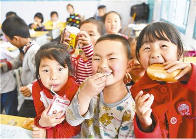 今春开学以来,湖南省花垣县双龙镇排料九年一贯制学校的学生,除了每天吃上国家提供的营养午餐外,还另加了学生课间营养餐(一个鸡蛋,一杯牛奶和一份面包)。截至目前,该县共有3所农村学校1000余名学生享受到了课间营养餐。