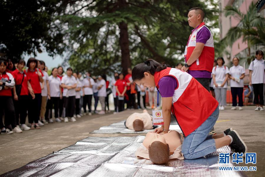 6月24日,在广西龙胜各族自治县龙胜中学,学生学习急救技能。 暑假临近,广西龙胜各族自治县龙胜中学开展夏季安全教育活动,邀请专业人员向学生们传授安全急救技能,提高学生的安全意识和自救能力。 新华社发(黄勇丹摄)