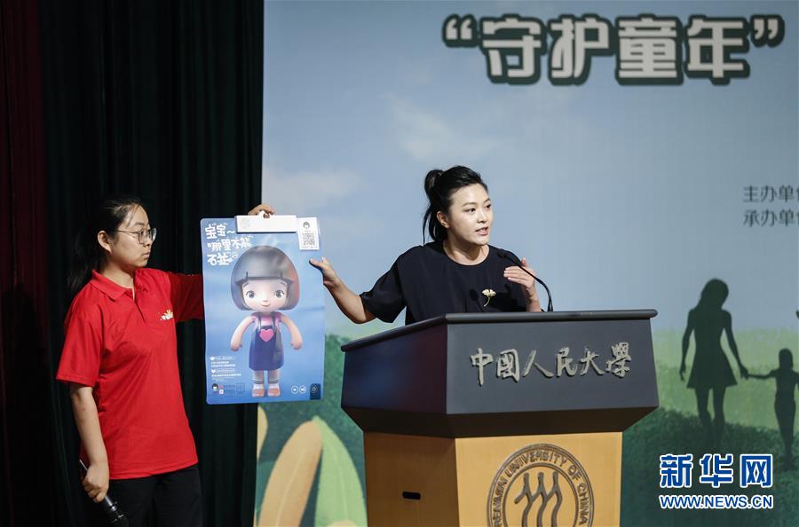7月10日,“女童保护”公益项目发起人孙雪梅向志愿者们讲授如何开展儿童自我保护课,以帮助他们进一步做好下乡服务工作。新华社记者 张玉薇 摄